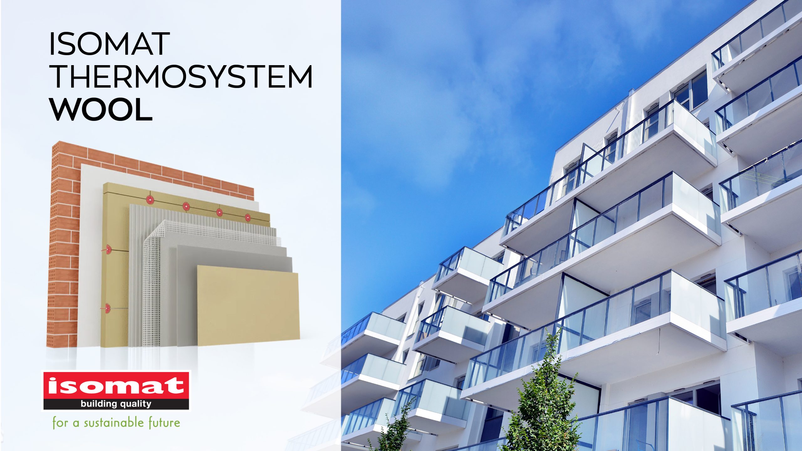 THERMOSYSTEM WOOL is a certified external thermal insulation and building renovation system developed by ISOMAT, suitable for both existing and new buildings. In addition to the high level of thermal insulation it provides, it is characterized by very effective sound insulation properties.