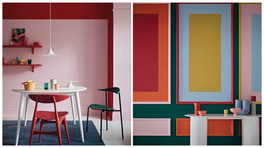 This is a way to introduce more than one colour onto a wall with an easy to achieve paint effect.